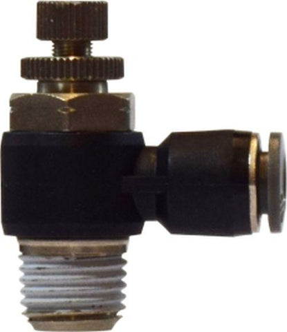 Midland | 20727C | 1/4 X 1/8 MALE ELBOW W/ FLOW CONTROL VAL, Brass Fittings, Composite Body Push In Fittings, Right Angle Flow Control Meter In